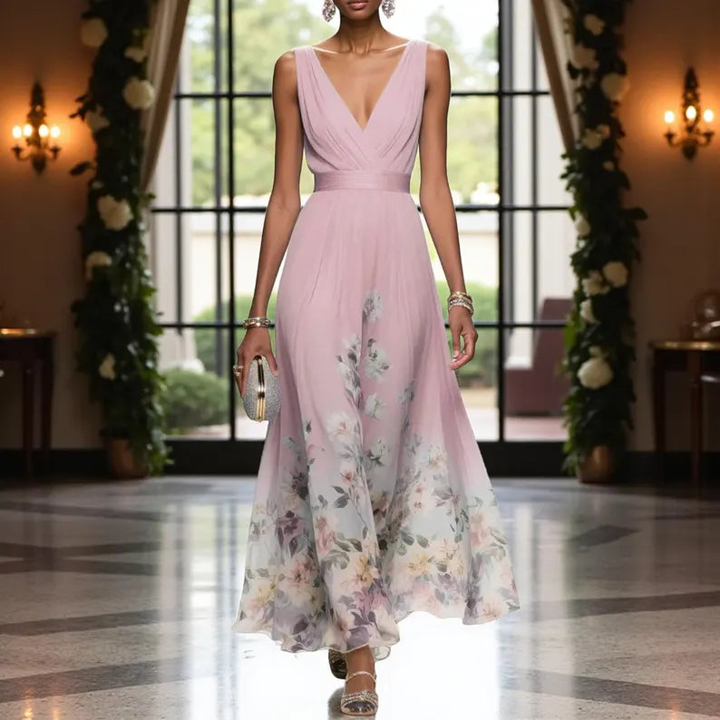 Bring elegance and charm to every occasion with this V-Neck Sleeveless Maxi Dress.