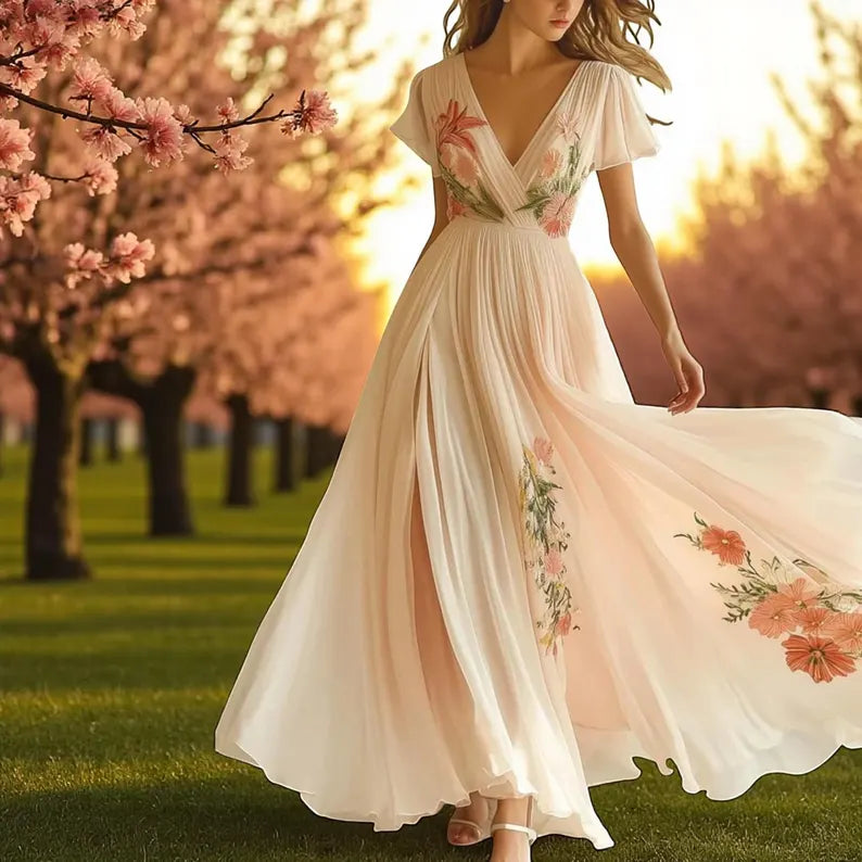 Floral Sleeveless Sundress, Beach Gown for Wedding GuestStep into timeless elegance with this Floral Sleeveless Maxi Dress, designed for both casual summer days and formal celebrations.